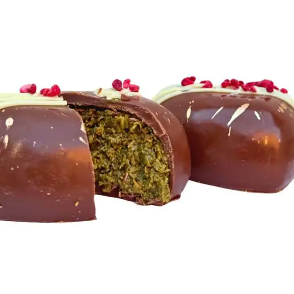Ciasto kataifi ,Czekolada belgijska ,Pasta pistacjowa |
