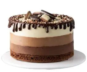 Puszysty biszkopt na bazie gorzkiej czekolady uzupełniony jest warstwami kremu maślano-czekoladowym, gorzkiej i mlecznej czekolady. Wierzch ciasta pokryty jest miękką polewą czekoladową i posypką, karmelizowanymi orzechami.