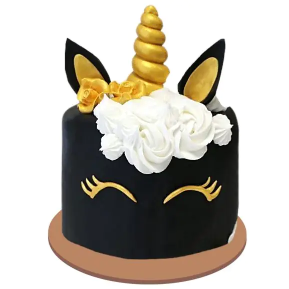 To niezwykle elegancki tort z motywem jednorożca, w kolorach czarno-złotych, to prawdziwy klejnot w krainie słodkich marzeń. Czarne i złote elementy tworzą harmonię luksusu i tajemniczości. To jak odkrywanie ukrytych skarbów w magicznym lesie. Uroku i magia tego tortu to idealny wybór na wyjątkowe okazje, które zasługują na wyjątkową słodycz. 🦄🍰✨