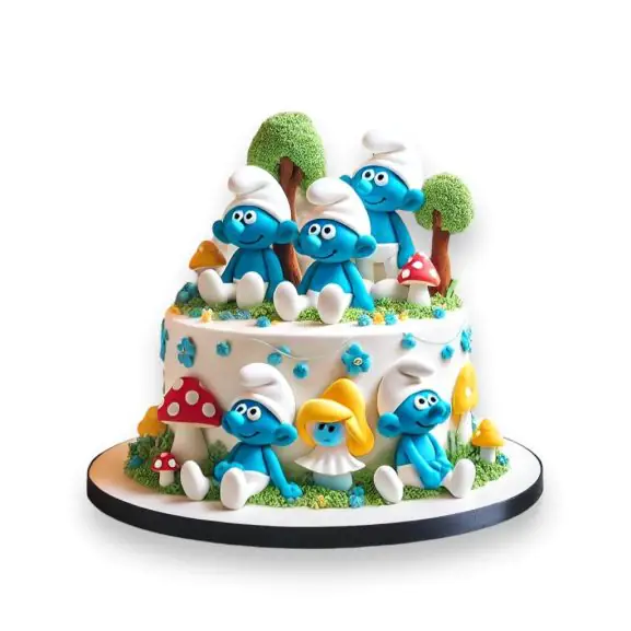 Zanurz się w magicznym świecie Smerfów z tym czarującym tortem! Tort z uroczymi figurkami Smerfów i szczegółową sceną leśną z grzybami i drzewami jest idealny dla fanów klasycznych niebieskich postaci. Żywe kolory i misterne dekoracje sprawiają, że jest to zachwycający element centralny każdej tematycznej imprezy.