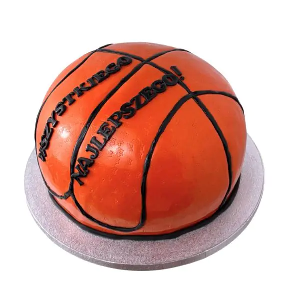 Tort w kształcie piłki do koszykówki to idealna propozycja dla miłośników sportu i koszykówki. Jego realistyczny wygląd i intensywnie pomarańczowy kolor sprawiają, że przyciąga wzrok i będzie świetną niespodzianką na urodziny czy inne sportowe okazje. Wykonany z dbałością o detale, ozdobiony napisami “Wszystkiego Najlepszego!”, ten tort nie tylko dobrze wygląda, ale też doskonale smakuje, będąc doskonałym wyborem na każdą imprezę.