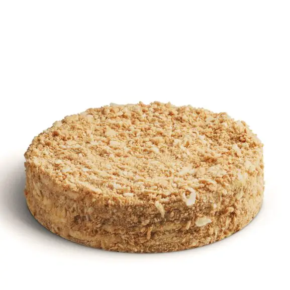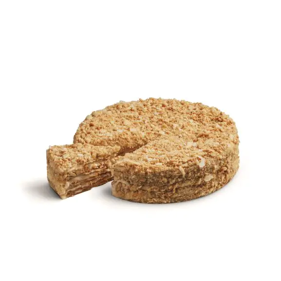 Ukraiński tort Napoleon to blaty cienko rozwałkowanego kruchego ciasta. Ciasto przełożone kremem budyniowym.
