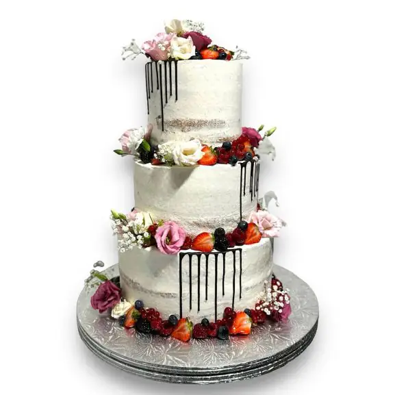 Nasz klasyczny tort weselny to kwintesencja elegancji i smaku. Tradycyjnie biały, ozdobiony delikatnymi kwiatami, wspaniale komponuje się z każdym stylem uroczystości.