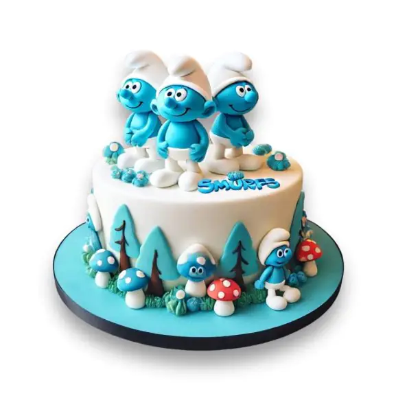Zanurz się w magicznym świecie Smerfów z tym czarującym tortem! Tort z uroczymi figurkami Smerfów i szczegółową sceną leśną z grzybami i drzewami jest idealny dla fanów klasycznych niebieskich postaci. Żywe kolory i misterne dekoracje sprawiają, że jest to zachwycający element centralny każdej tematycznej imprezy.