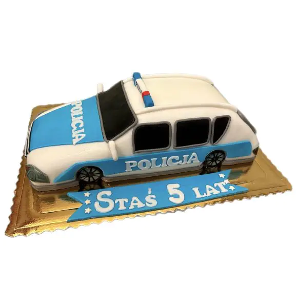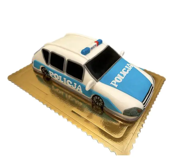 Tort w kształcie auta policyjnego to idealny wybór dla fanów mundurów i migających światełek. Ten wyjątkowy tort przypomina pojazd służbowy policji, z wyrazistą kolorystyką i detalami, które robią wrażenie. Zastosowana jadalna dekoracja oddaje autentyczny wygląd radiowozu. Cały tort jest starannie wykonany i smaczny, doskonale oddający ducha służb mundurowych. To świetny wybór na urodziny lub specjalne okazje dla małych entuzjastów policyjnych przygód.